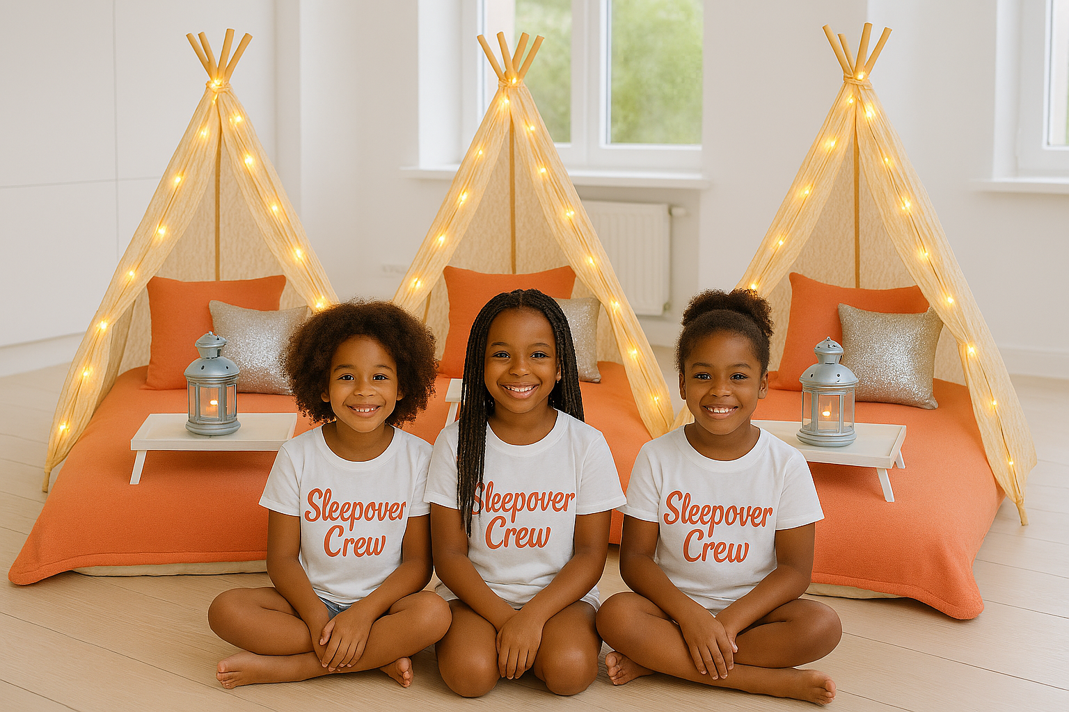 Thank you for your interest in our services! Please note that a mileage fee may apply based on your location. Be sure to click on each theme to explore the full list of items included. Balloons, eye masks, water bottles, candy carts, shirts, and more are available for an additional charge. For hygiene reasons, we do not provide personal sleeping pillows; our pillows are intended for decorative purposes only.
