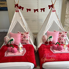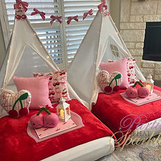 What's included: Set Up/Take Down 6 Exclusive Theme Tents 6 Mattresses 6 White Sheets 6 Red Blankets 6 Trays 6 Plush Cherries Bow Garlands Decorative Pillows Fairy Tent String Lights This theme can be booked up to 8 tents. If you would like to book more than 6 tents, please leave a comment in the notes field when booking. A $75 deposit is required to secure your event date and will be applied to your balance; remaining balance is due 7 days before your event date. If your event is less than 2 weeks out when booked, then payment is due in full at the time of booking. A travel fee is accessed on all bookings. Please contact us if you have additional questions. **Please note we are unable to hold dates without a paid deposit** The measurements are: Tents: 50in H x 50in W x 47in L Mattresses: 75.00L x 39.00W