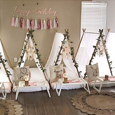 Boho Bliss sleepover! What's included: Set Up/Take Down 6 Exclusive Theme Tents 6 Mattresses 6 Sheets 6 Blankets 6 Trays 6 Lanterns Rugs Decorative Pillows Decorative String Lights 6 Dreamcatchers This theme (Enchanted Boho) can be booked up to 7 tents. To book more than 6 tents please place a comment on the booking form. A $75 deposit is required to secure your event date and will be applied to your balance; remaining balance is due 7 days before your event date. If your event is less than 2 weeks out when booked then payment is due in full at the time of booking. A travel fee is accessed on all bookings. Please contact us if you have additional questions. **Please note we are unable to hold dates without a paid deposit** The measurements are: Tents: 50in H x 50in W x 47in L Mattresses: 75.00L x 39.00W
