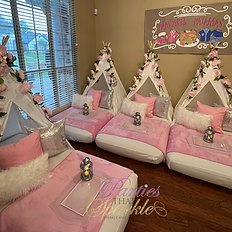 What's included: Set Up/Take Down 6 Exclusive Theme Tents 6 Mattresses 6 White Sheets 6 Pink Blankets 6 Trays 6 Silver Lanterns 6 Pink Flower Garlands Decorative Pillows Decorative String Lights This theme can be booked up to 8 tents. Please contact us to book 8 tents. A $75 deposit is required to secure your event date and will be applied to your balance; remaining balance is due 7 days before your event date. If your event is less than 2 weeks out when booked then payment is due in full at the time of booking. A travel fee is assessed on all bookings outside of Mansfield. Additional Add-Ons available. Please contact us if you have additional questions. If you would like to book an event for less than 6 tents please contact us and we will accommodate your request. *Balloons, eye mask, cups, etc are an additional charge* **Please note we are unable to hold dates without a paid deposit** The measurements are: Tents: 50in H x 50in W x 47in L Mattresses: 75.00L x 39.00W